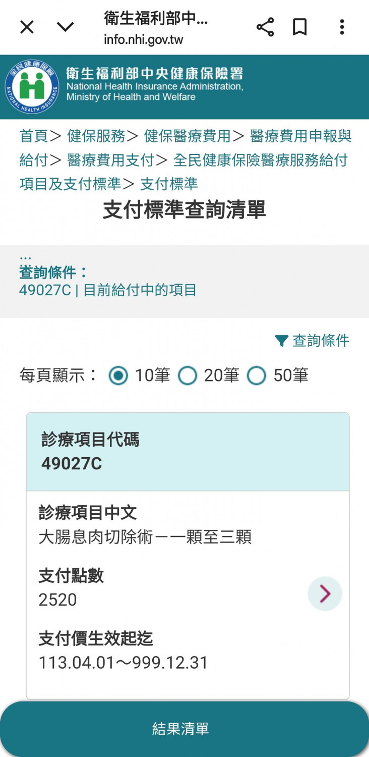 49027C 大腸息肉切除術,隸屬於 第二部第二章第六節,也就是保險公司常說的「226」,通常這項「處置」,都在各醫療院所的內視鏡室實行。