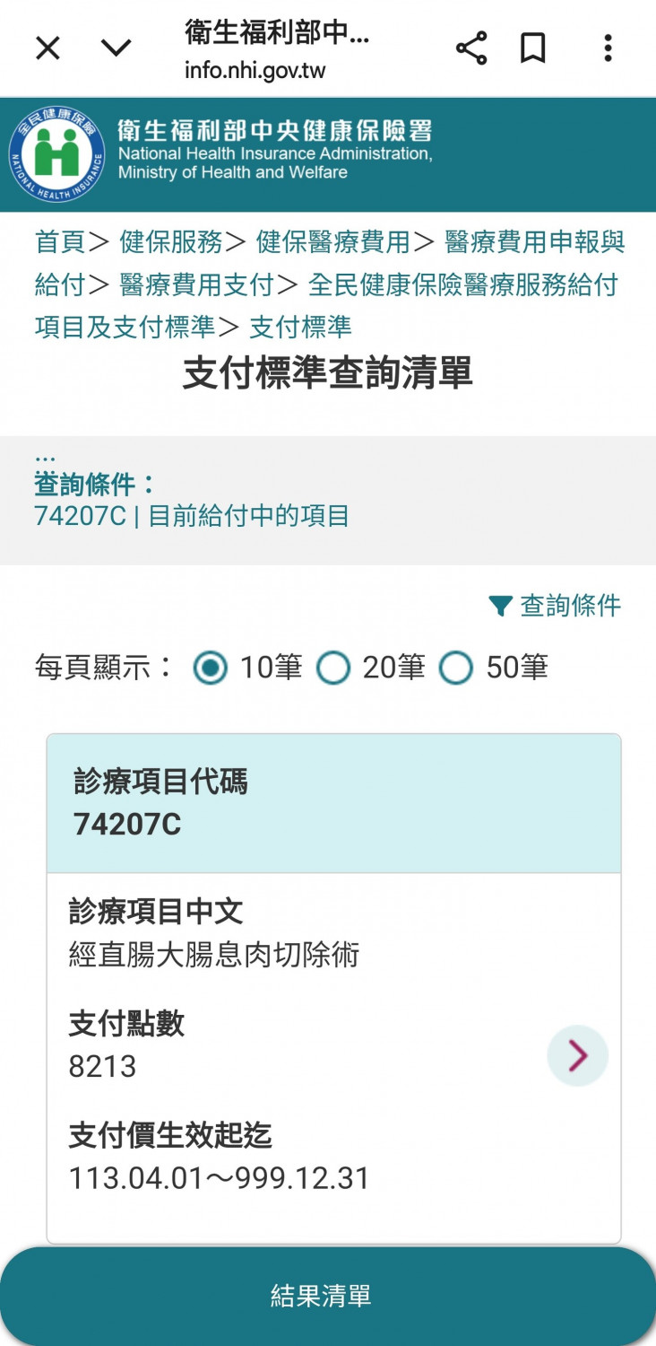 這時候我們會計價:74207C 經直腸大腸息肉切除術,這就算是貨真價實的「手術」了!隸屬於第二部第二章第七節,也就是保險公司說的「227」。