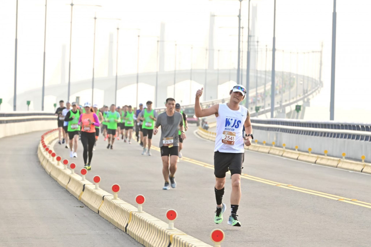 壯闊的金門大橋,成為馬拉松最新亮點。跑者在海風相伴下,感受島嶼壯麗景觀與挑戰的激情。(圖為金門馬拉松大會提供)