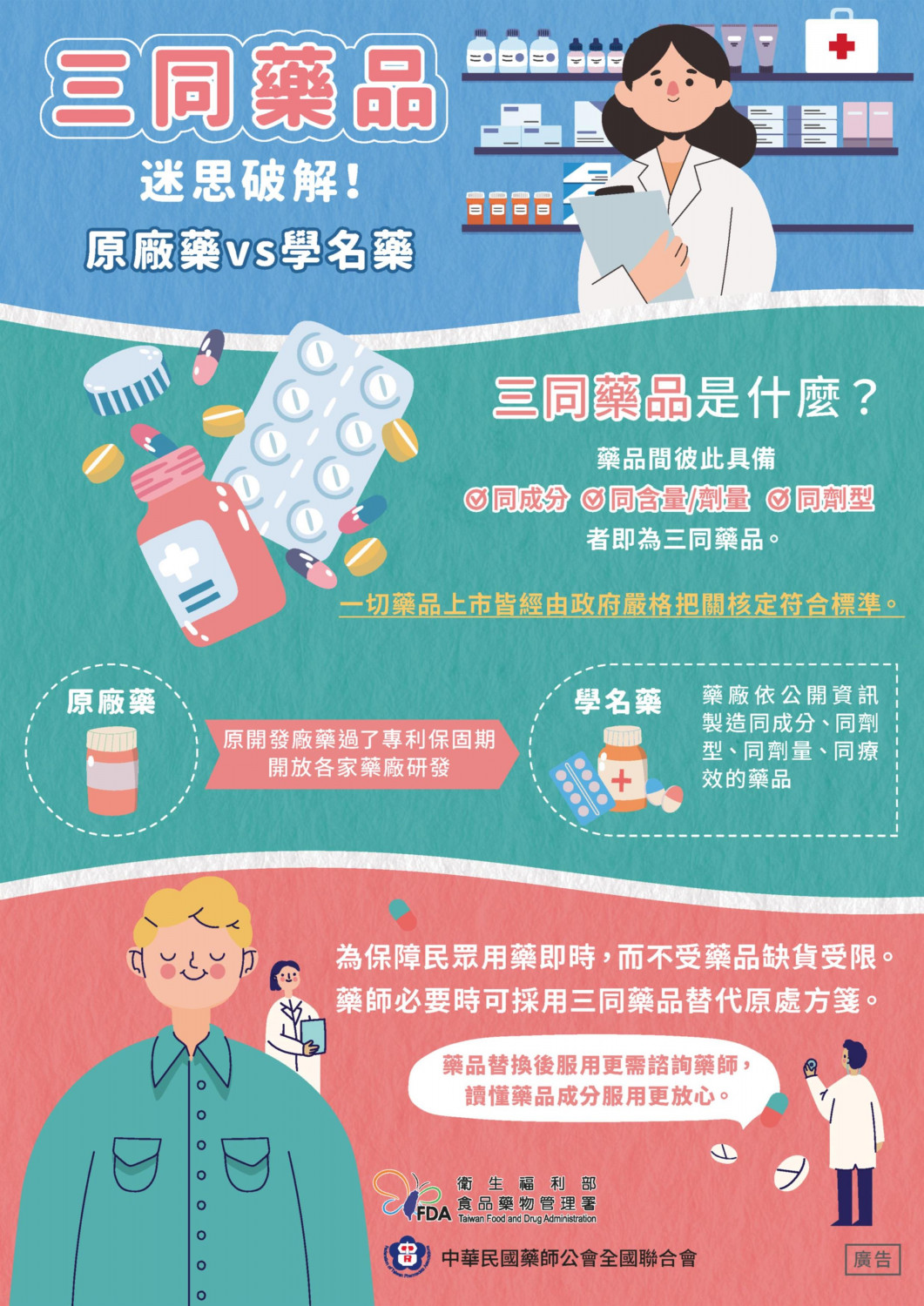 💊破除用藥迷思:學名藥與原廠藥 都是好選擇 💬「藥師,你說這個藥是不同廠牌,效果會一樣嗎?」 💬「聽說 #學名藥 跟 #原廠藥 不一樣?」 大家在領藥時,是不是常常遇到類似問題呢? ----- #原廠藥 是藥廠經過長期研發與臨床實驗、取得專利之藥品!在專利保護期內,只有該藥廠可以生產😇 ➡「原廠藥」專利期滿,開放其他藥廠製造 ✅「#學名藥」:與原廠藥具同成分、同劑型及同劑量之小分子化學藥品,且經證明品質、安全與療效與原廠藥相當。 📢若想瞭解更多有關「學名藥」資訊,可至 健保署官網:https://www.nhi.gov.tw/ 食藥署官網:https://www.fda.gov.tw/TC/index.aspx 👉得到解答,也可與醫師及藥師討論,為自己和家人找到最適合的治療藥品! ----- ⭐全民健保行動快易通|健康存摺App⭐ 📲 Android:https://goo.gl/dwD1aC 📲 iOS:https://goo.gl/omZ11S 📞健保諮詢服務專線:0800-030-598 📱手機請撥02-4128-678