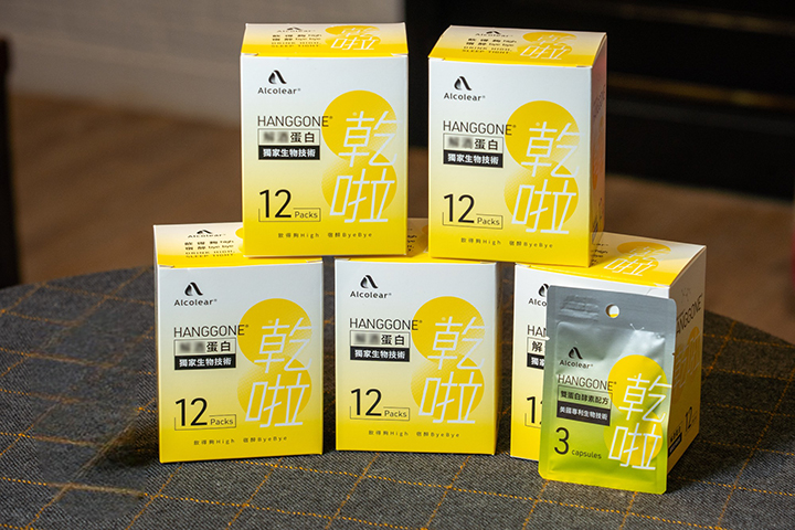 黃博士與團隊後續專注於雙酶研究,讓研究成果有機會應用於日常生活。他們成功萃取ADH(酒精脫氫酶)與 ALDH(乙醛脫氫酶),製成雙酶蛋白配方,並封裝於膠囊,且取得三項美國專利。最終,將這項成果商品化,推出乾啦®雙蛋白酵素膠囊,展現將科學知識轉化為產業應用並改善人們健康困擾的實例。