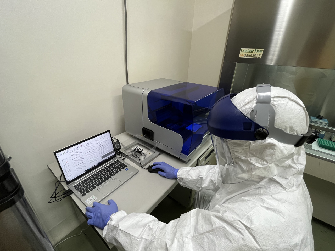 ▲農業部獸醫所副研究員黃有良在位於淡水的實驗室內,進行相關檢測作業。黃有良提供