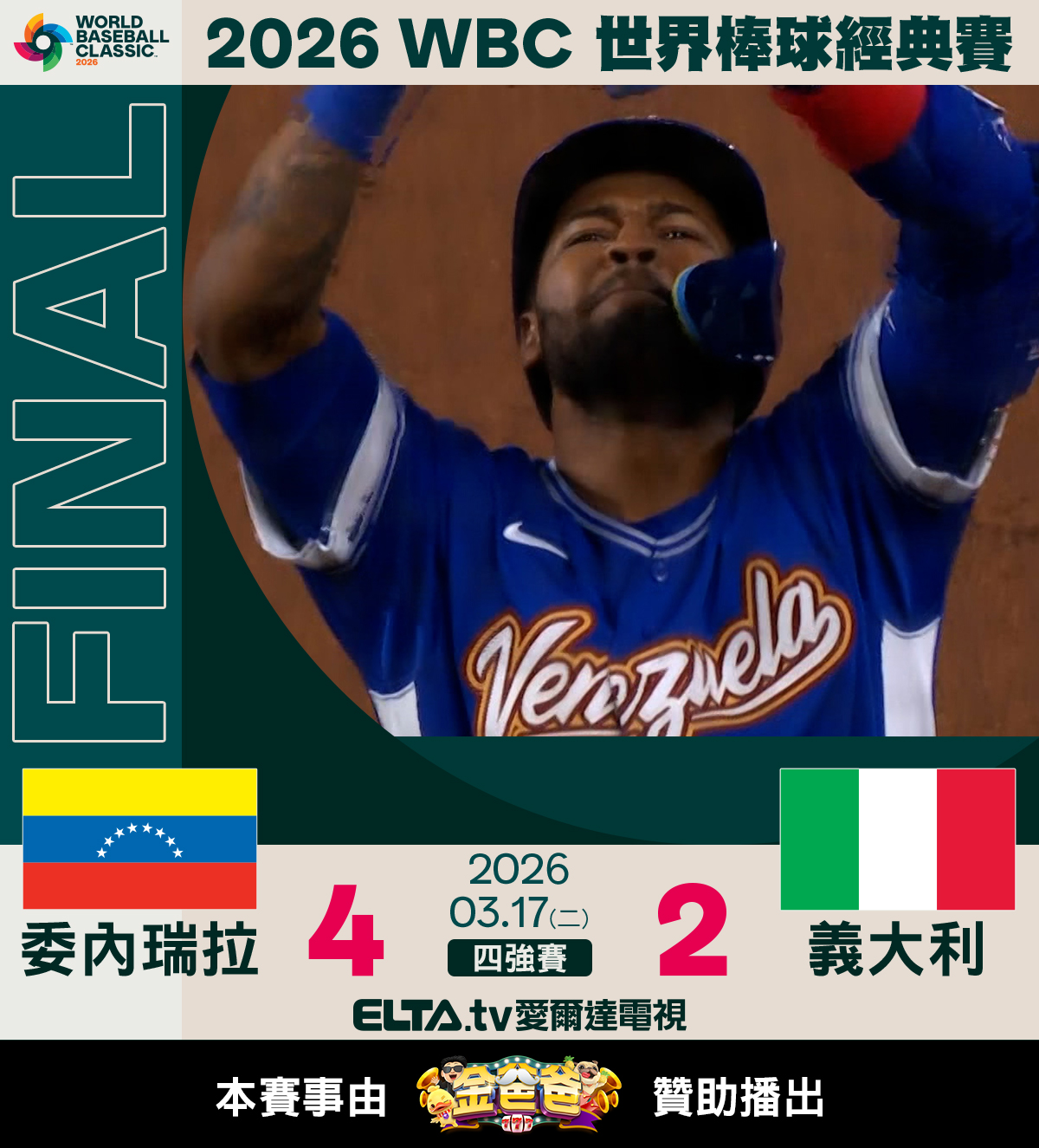 WBC經典賽冠軍戰將上演美洲互打戲碼!4強戰最後一場由委內瑞拉對決此次WBC黑馬義大利,由委內瑞拉勝出拿下冠軍戰門票,也是隊史上首度殺進經典賽冠軍戰。