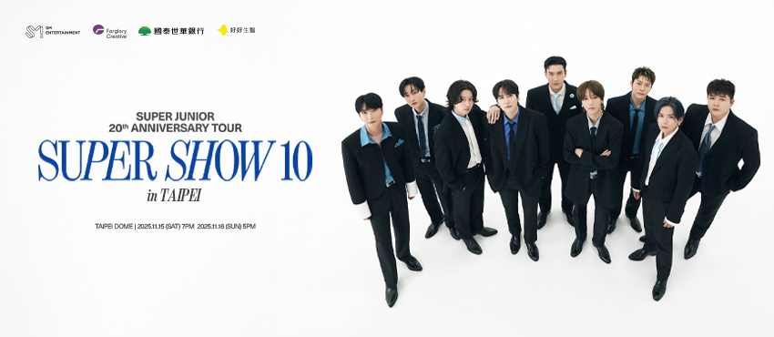 今年迎來出道20周年的人氣韓團Super Junior不僅7月要發全新專輯,更宣布將自8月起於首爾開始《SUPER SHOW 10》世界巡迴演唱會,預計將跑遍香港、馬尼拉、墨西哥...等城市,且將於11/15、11/16登上台北大巨蛋,1/24移師高雄巨蛋,北部和南部的朋友們都有機會目睹Super Junior的超高人氣與精采演出!而Super Junior也將成為首度踏上大巨蛋舞台的韓國團體。