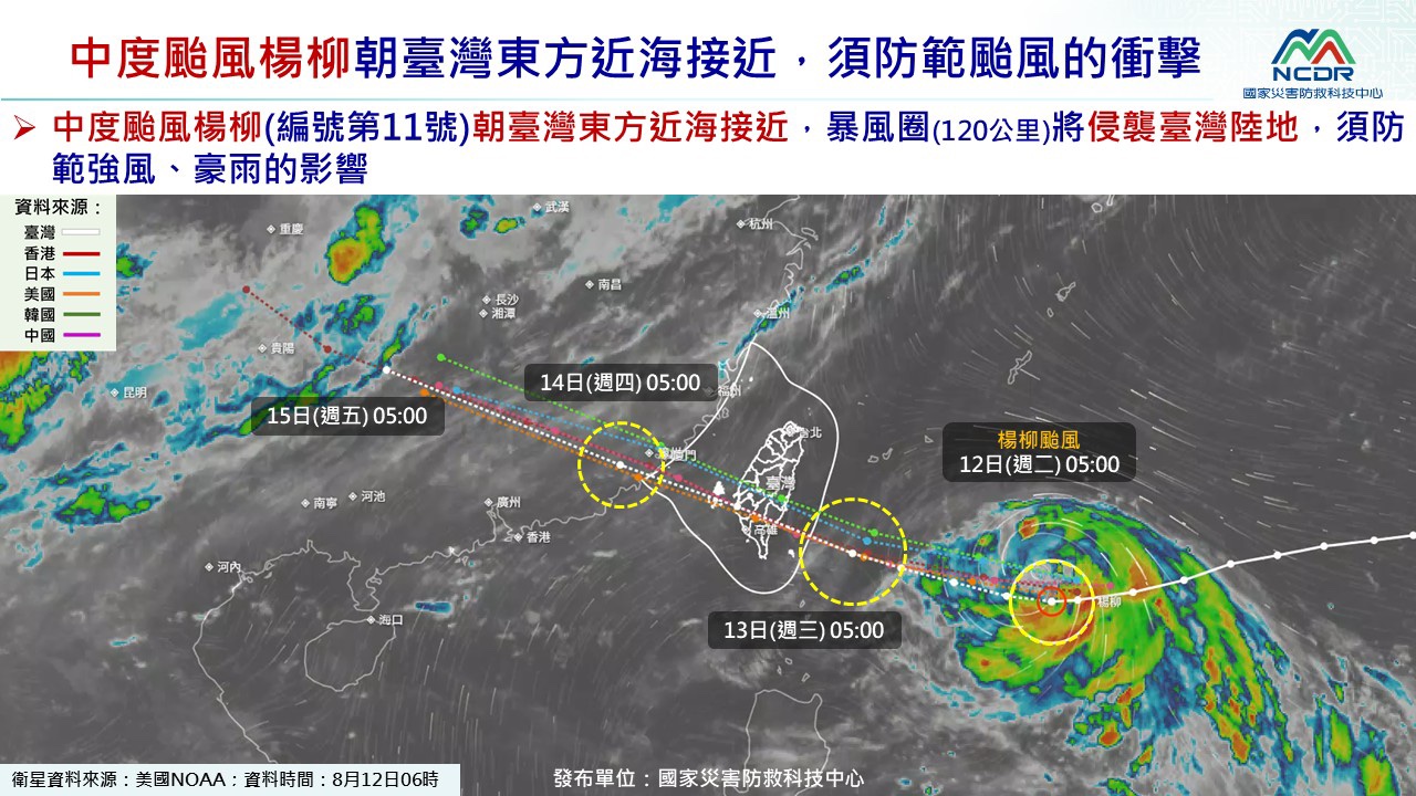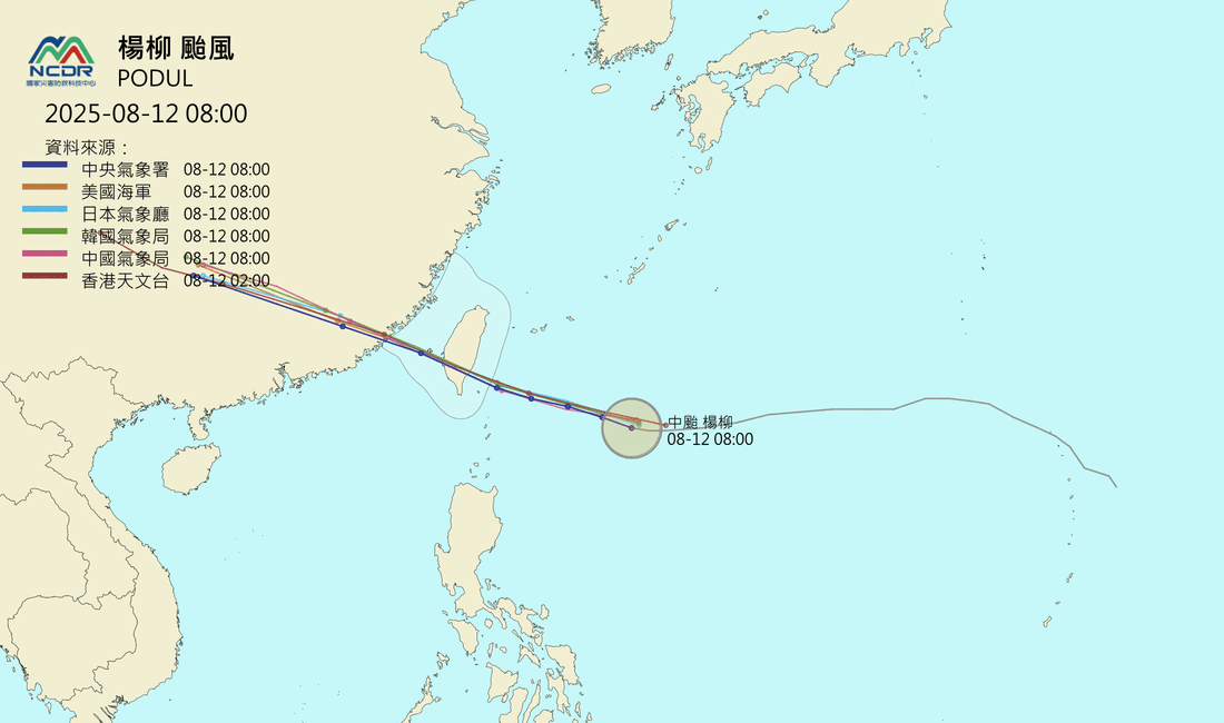 今(2025)第11號颱風「楊柳」(PODUL)直往台灣撲來,隨著時間變得又大又強,中央氣象署已於今(12)日下午5時30分再度發布海上陸上颱風警報