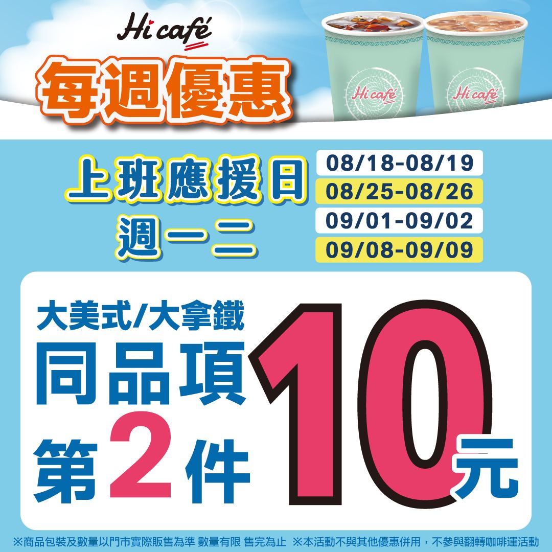 - 大杯美式第2杯10元(原價45元、特價28元)