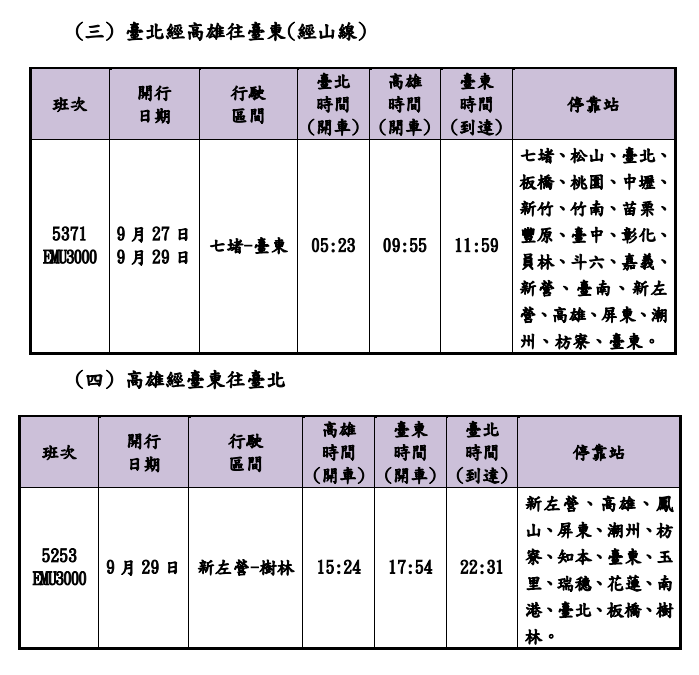 另為加強疏運旅客,114年9月26日至9月30日暫停發售親子車廂車票,改以一般車廂方式售票。