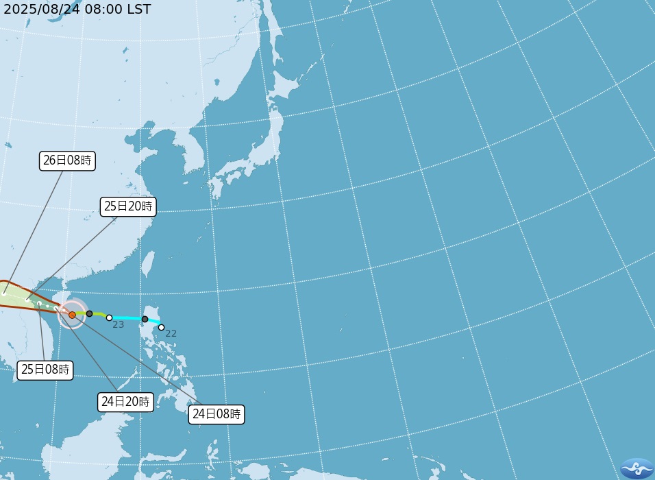 中央氣象署今(24)日指出,第13號颱風「劍魚」於上午8時增強為中度颱風,中心位置位於北緯17.2度、東經111.3度,正以每小時22公里的速度往西北西進行,預測將朝中國海南島南側與越南中北部沿海前進,對台灣天氣無直接影響。