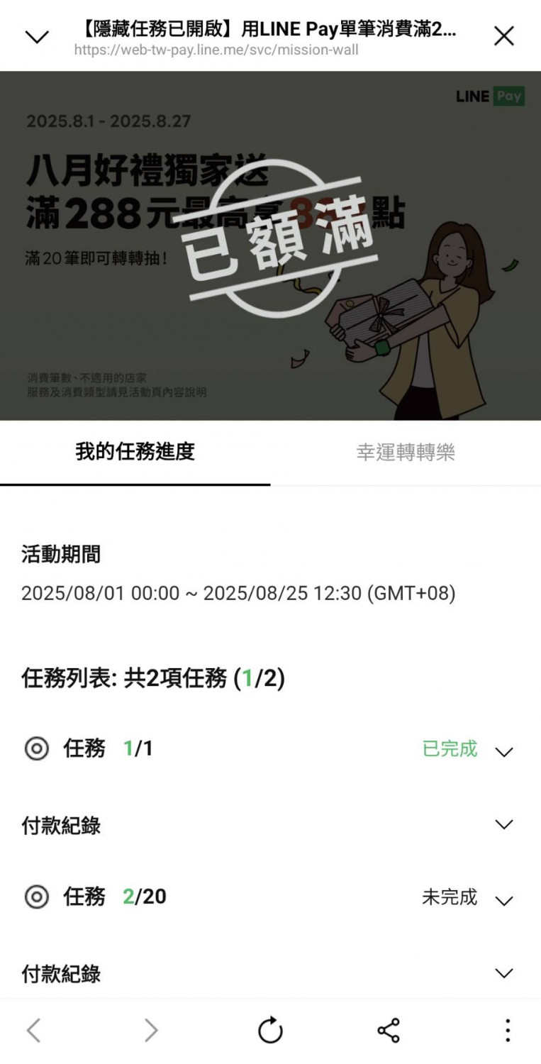 LINE Pay:因點數達回饋上限,已增加明顯圖示標註活動額滿