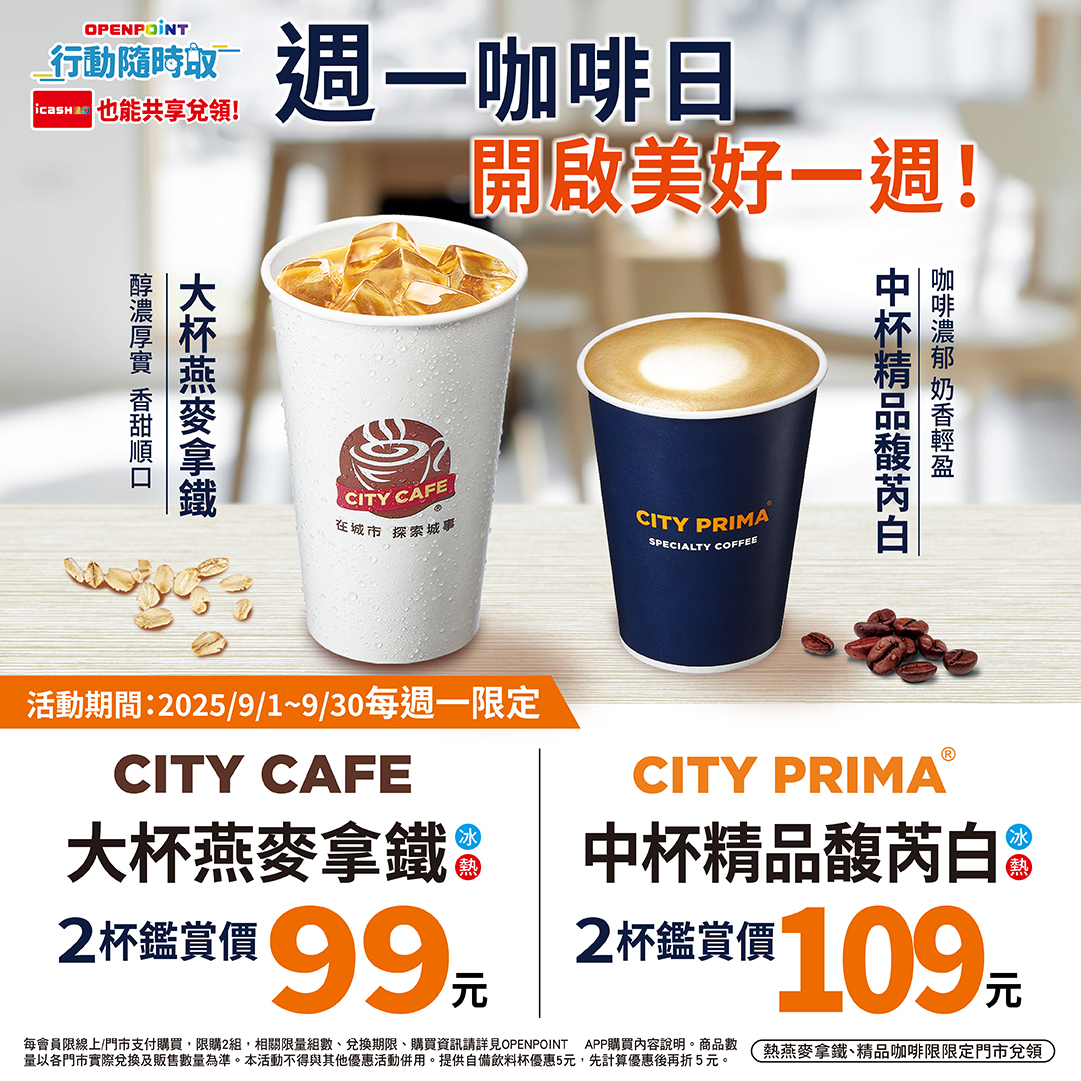 - 大杯燕麥拿鐵 2杯鑑賞價99元