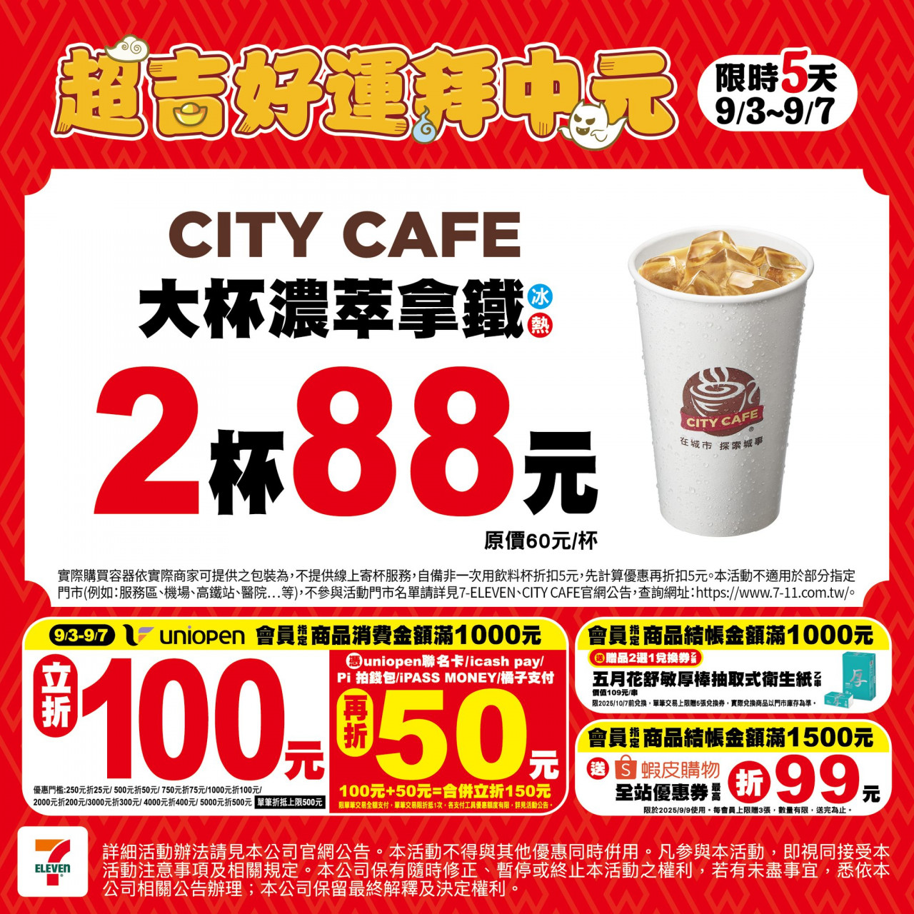 - 大杯特濃拿鐵2杯75元(原價65元、特價38元)