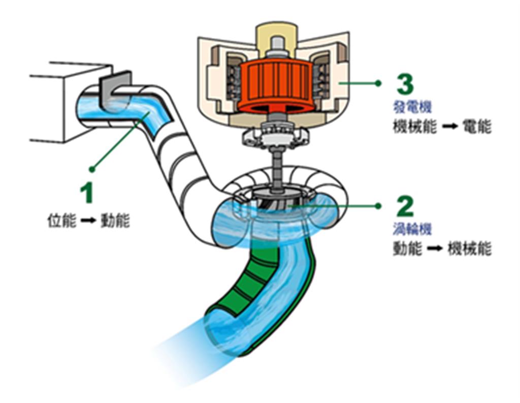 ▲翡翠水庫「水力發電」為百分百綠能,利用水位高差勢能,經由水力發電廠,帶動水輪機運轉,驅動發電機產生電能。可選擇發電時段及時數,是電力供應的「最佳救援投手」。(北市翡管局提供/張珈瑄台北傳真)