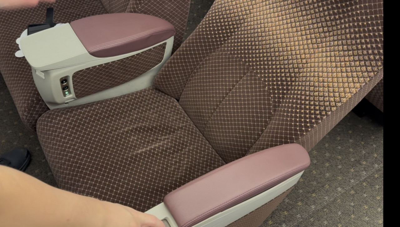 至於台灣未來的商務車廂,使用較為沉穩的配色,椅套材質採用柔軟舒適的絨布,並以褐色為基調搭配圖像的組合,車門則會有金色襯出高級感。
