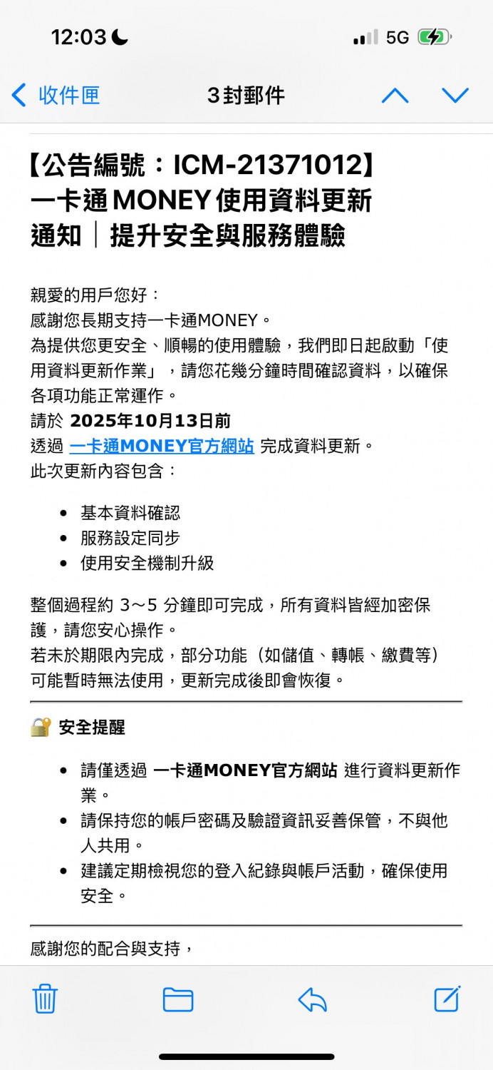 又有新詐騙手法!收到「一卡通iPASS MONEY」信件先別急點開