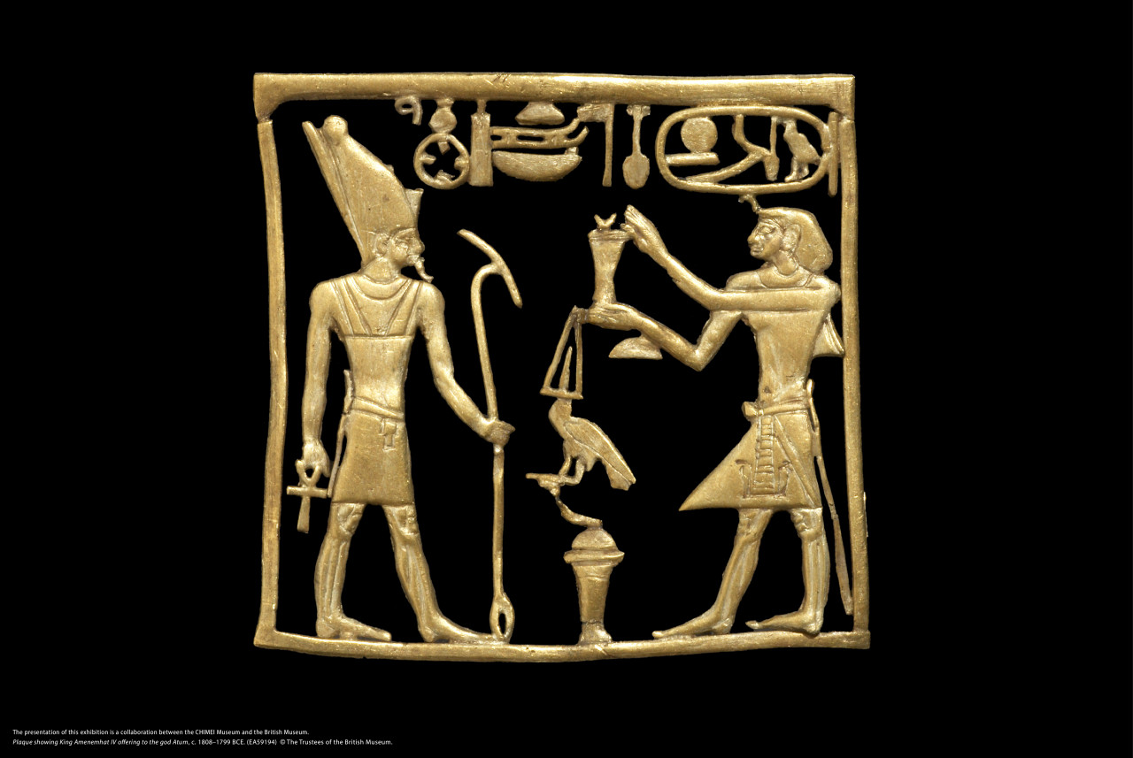 約西元前1808至1799年。這件金飾以在薄金片上穿孔的鏤空技法製成,展現古埃及的精湛工藝。