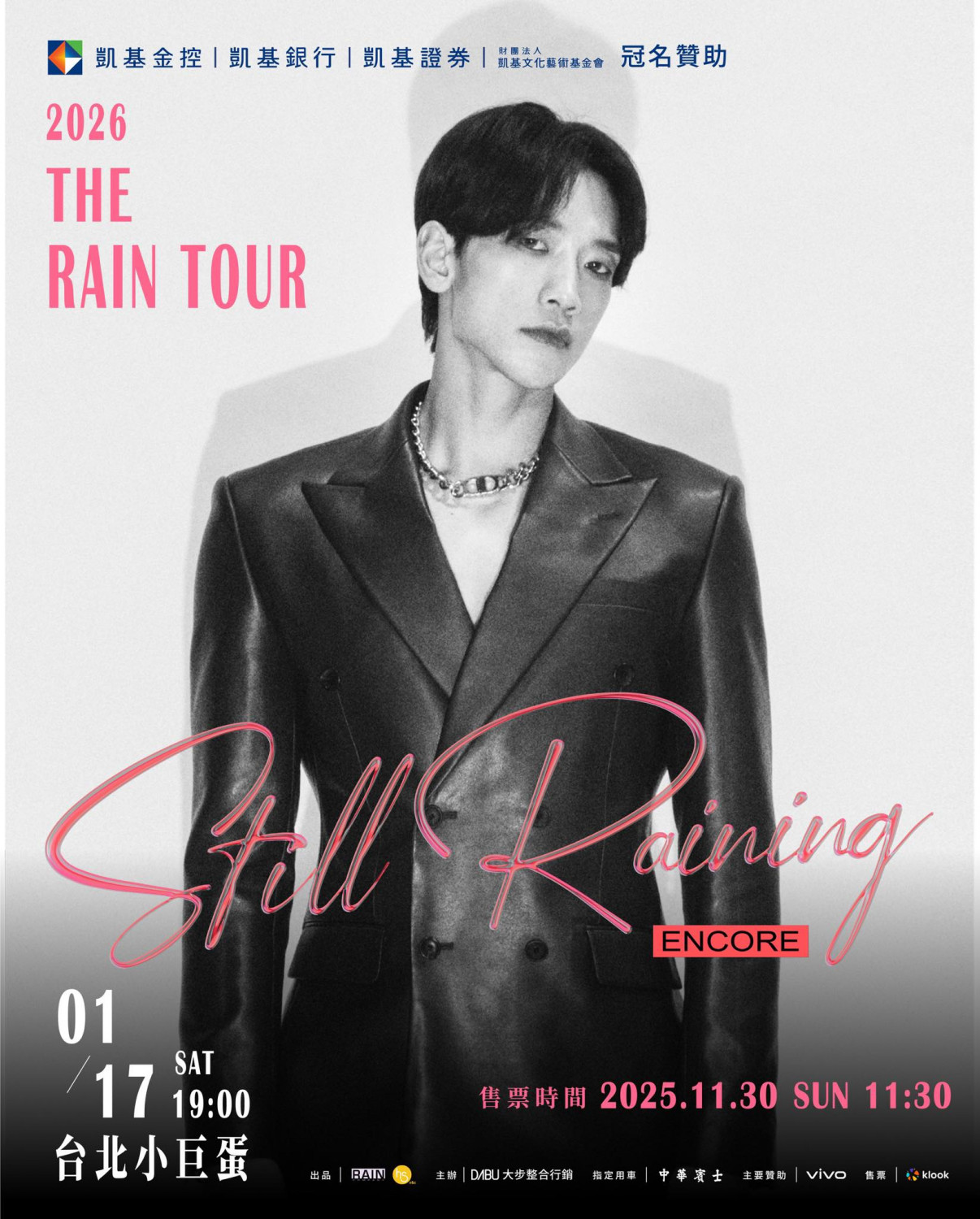 睽違20年再度攻蛋!韓流天王Rain不到一年再度來台,此次帶著升級版的巡迴演唱會《Still Raining》「Encore」場,不僅帶來全新的視覺特效,更將強調20年舞台經驗及全新視覺設計,在舞蹈編排與Live Band上更打造嶄新的震撼!