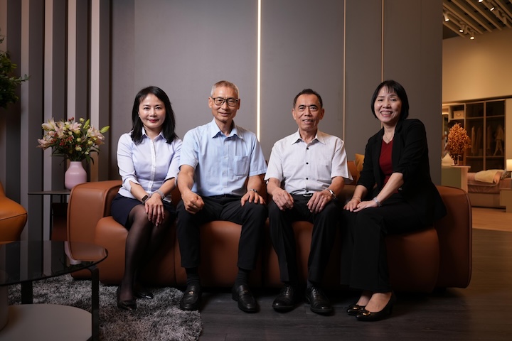 綠的傢俱董事長林明清(右二)、總經理吳益財(左二)、北桃區門市部協理王彩羽(右一)、板橋店店長汪之瑩(左一)
