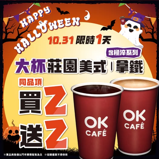 星巴克咖啡買一送一的優惠又來了,這次連續2天都能喝到,讓你在萬聖節也能約好友喝杯咖啡!根據星巴克官網,在10/30(星期四)至10/31(星期五),活動期間11時至20時,購買兩杯大杯(含)以上容量/冰熱/口味皆一致的飲料,其中一杯由星巴克招待。