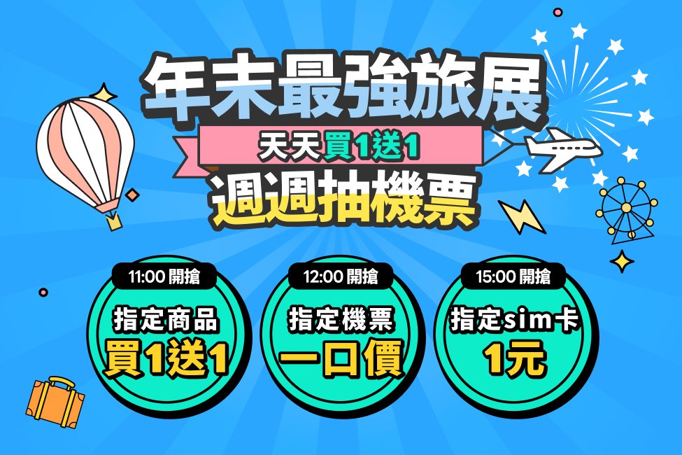 易飛網ITF台北線上旅展期間推出限量「買一送一」團,還有多項折扣碼優惠,包含日本跟團第二人最高折6000元、國外自由行第2人最高折1000元、歌詩達郵輪指定航次第三人0元...等,即日起到11月10日。