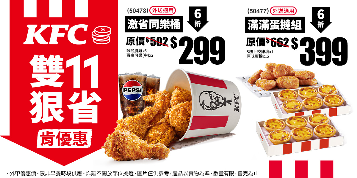 肯德基雙11優惠。(圖/翻攝自肯德基臉書)