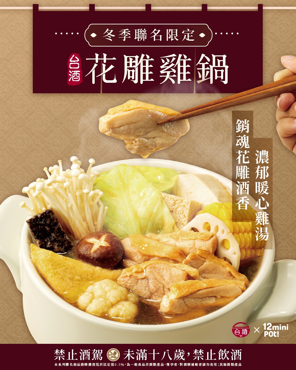 12mini冬季聯名限定台酒花雕雞鍋。(圖/翻攝自12mini臉書)
