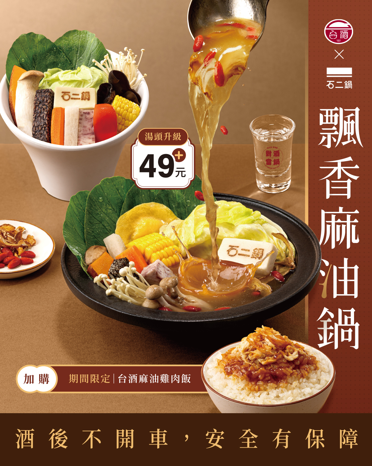 「石二鍋」與「12mini」與台酒聯名,分別推出全新「台酒飄香麻油鍋」與「台酒花雕雞鍋」。