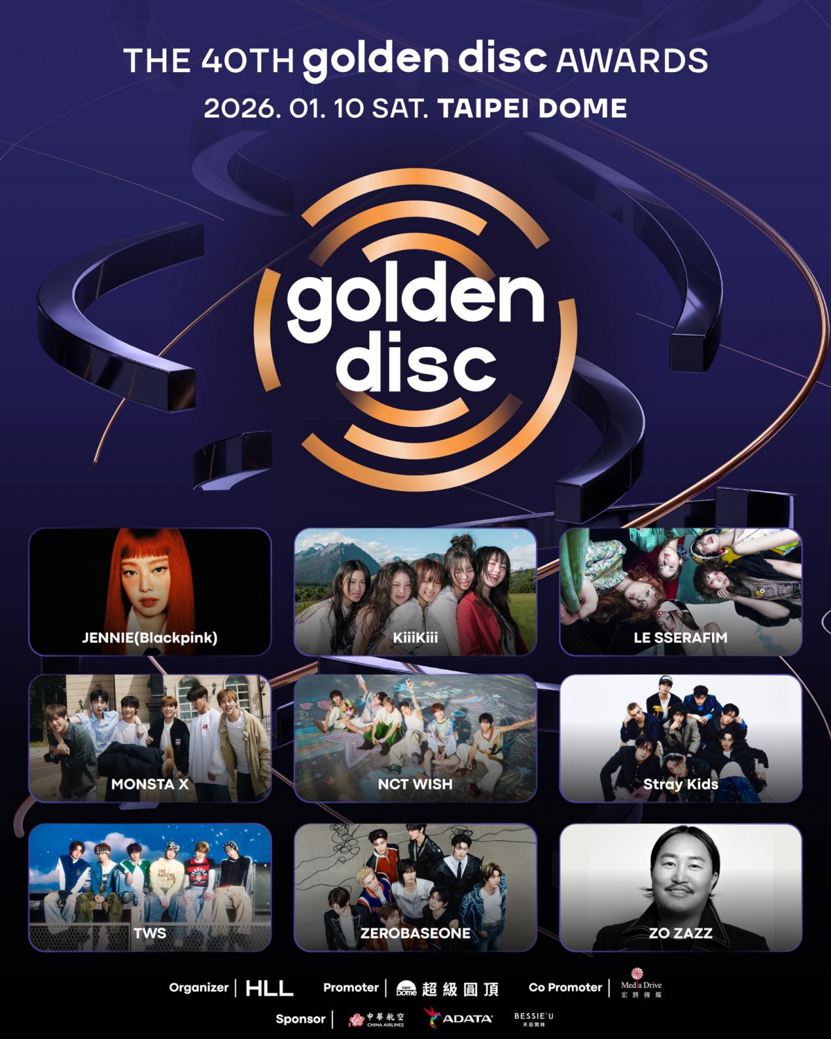 2026金唱片頒獎典禮2026/1/10在台灣舉辦,於台北大巨蛋舉行40週年典禮,18組超強陣容即將來台演出,BLACKPINK人氣成員Jennie、男神許光漢以及天后蔡依林也會出席。