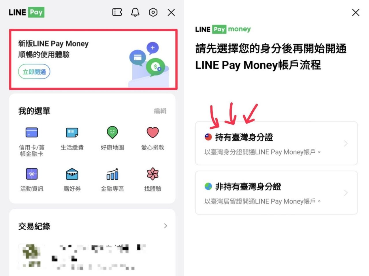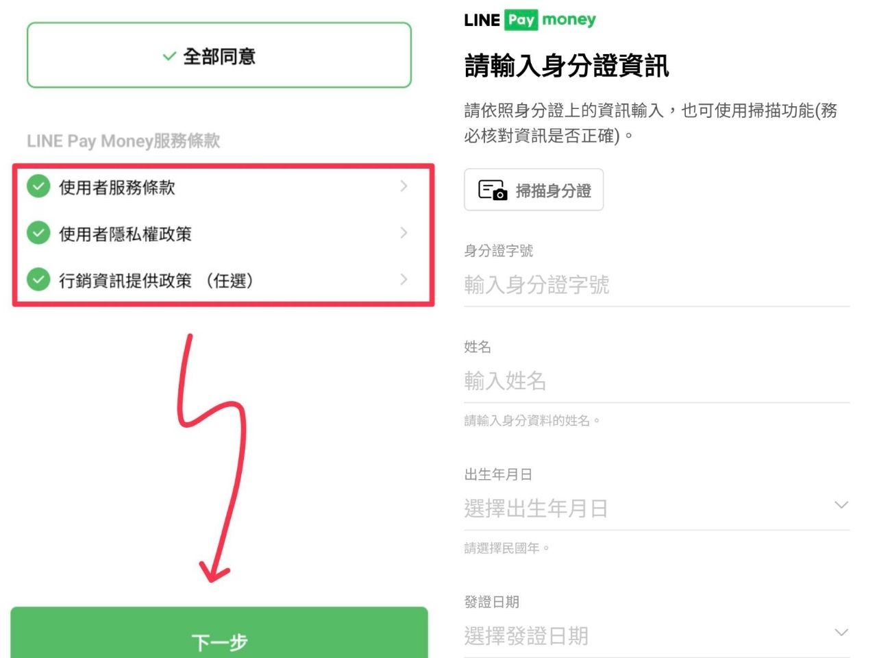 3. 選擇身分後,進入開通LINE Pay Money帳戶流程