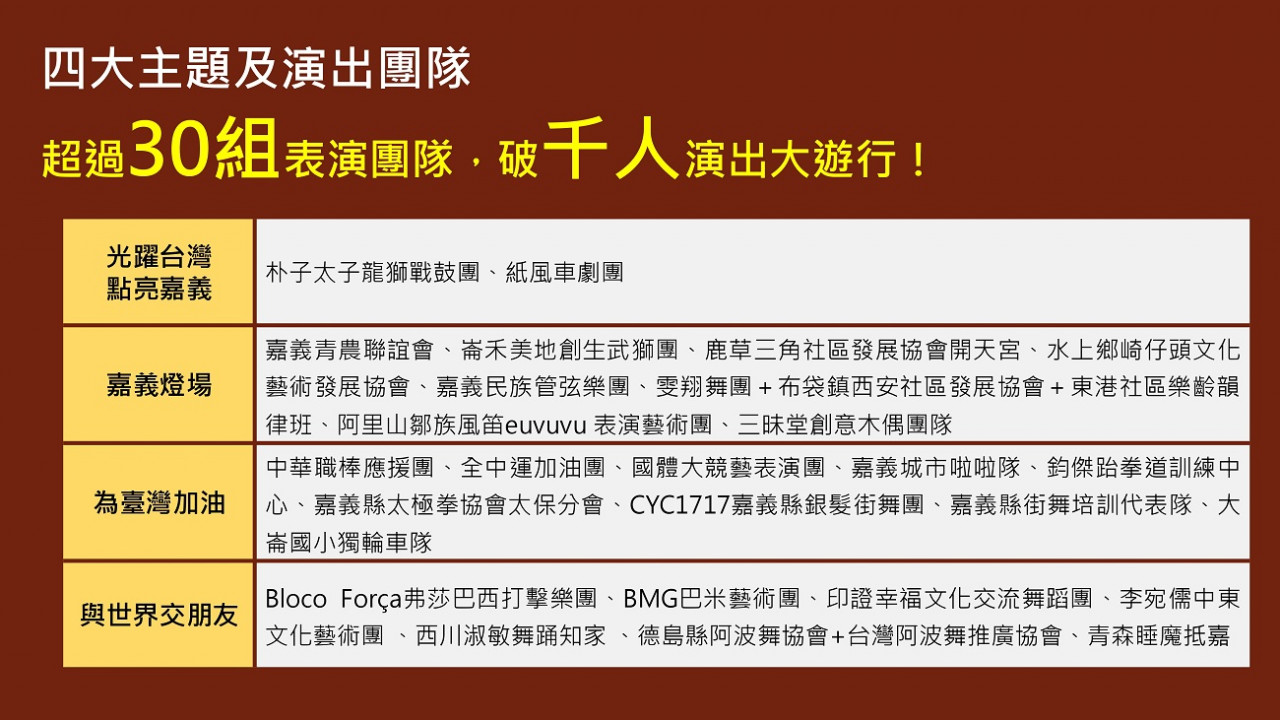 時隔8年,2026台灣燈會回到嘉義縣舉辦,主展區及地方展區共規劃1座主燈、2大副燈及23個主題燈區,展出超過600件以上作品。