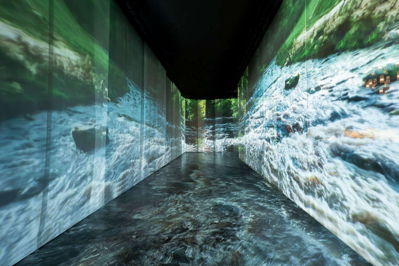 ▲發表會上,以投影布幕打造沉浸式體驗,呈現原酒雋永悠長的滂薄氣勢。