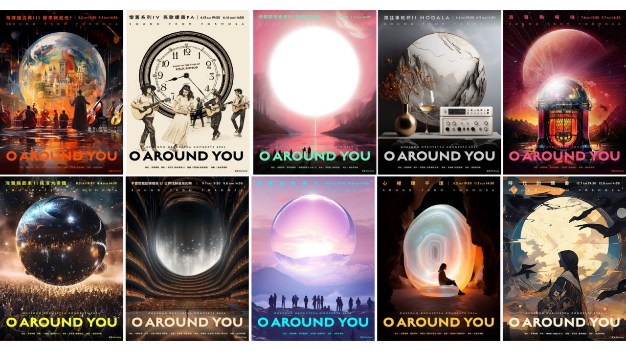 為了讓整個灣聲的視覺形象更突顯,灣聲也找到台灣新銳設計師廖小子,幫全年音樂會海報做設計。年度設計都是從一個概念延伸出風格,例如2024年以OneSong的O Aound you,或是2023年以時尚雜誌風格呈現,有時很懷舊,有時又很跳tone,表現出灣聲既古典又時尚的形象。(見圖:灣聲提供)