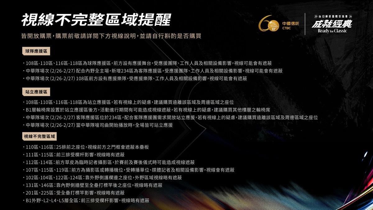 ▲2026台日棒球國際交流賽視線不完整區域。(圖/拓元售票)