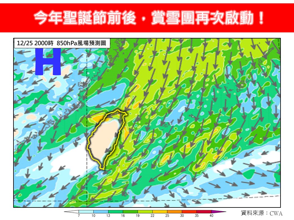 「今年聖誕節前後,賞雪團再次啟動!」國立臺灣大學大氣科學博士林得恩在臉書「林老師氣象站」發文表示,周三(12/24)、周四(12/25),今年聖誕節前後,受東北季風再增強影響,除北台灣及東北部地區天氣轉為涼冷之外,環境水氣也跟著增多。