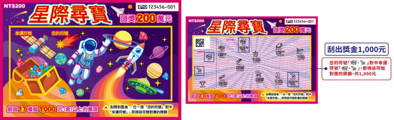 ▲刮刮樂「星際尋寶」玩法圖示。(圖/台灣彩券)