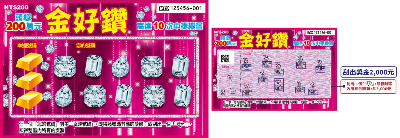 - 「金樂透號碼」和「特別號」上印有刮膜,可刮開作為對中之記號