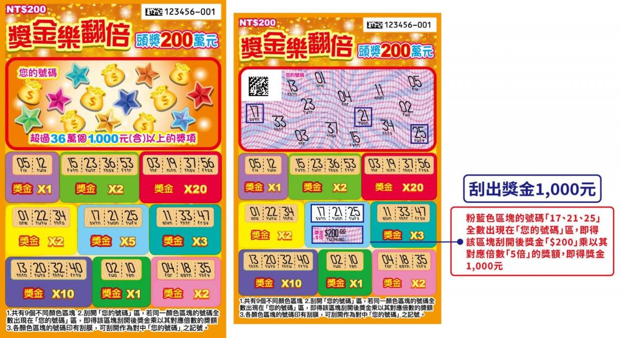 ▲刮刮樂「加倍旺」玩法圖示。(圖/台灣彩券)