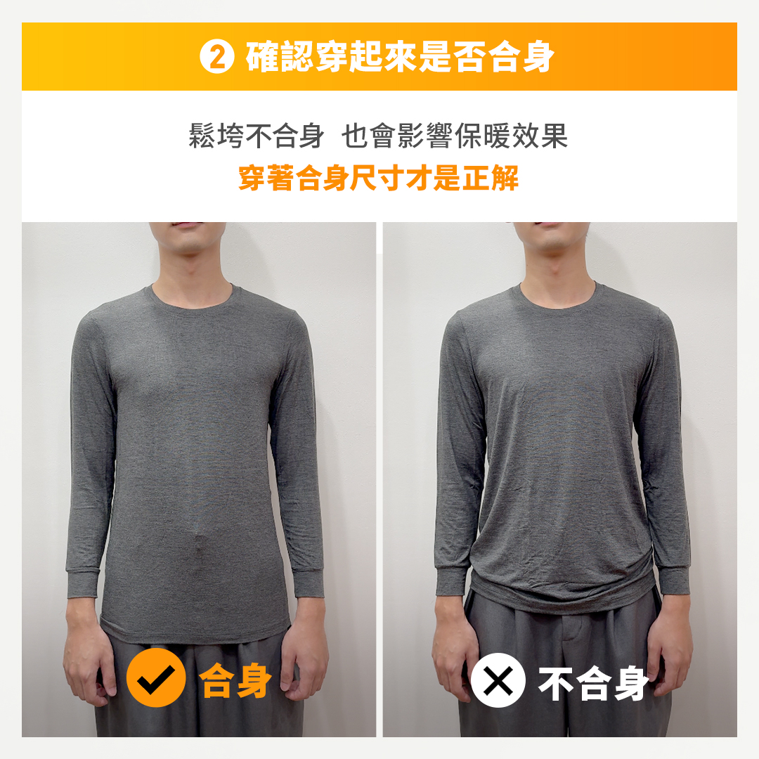 發熱衣是否貼身,也會直接影響保暖效果。時裝與紡織專家葉曉雲指出,發熱衣必須緊貼身體才能有效鎖住熱能,尺寸過大或是穿到布料變薄或領口鬆垮,容易讓熱氣流失,保暖力恐減半,因此建議選擇合身、親膚的款式。