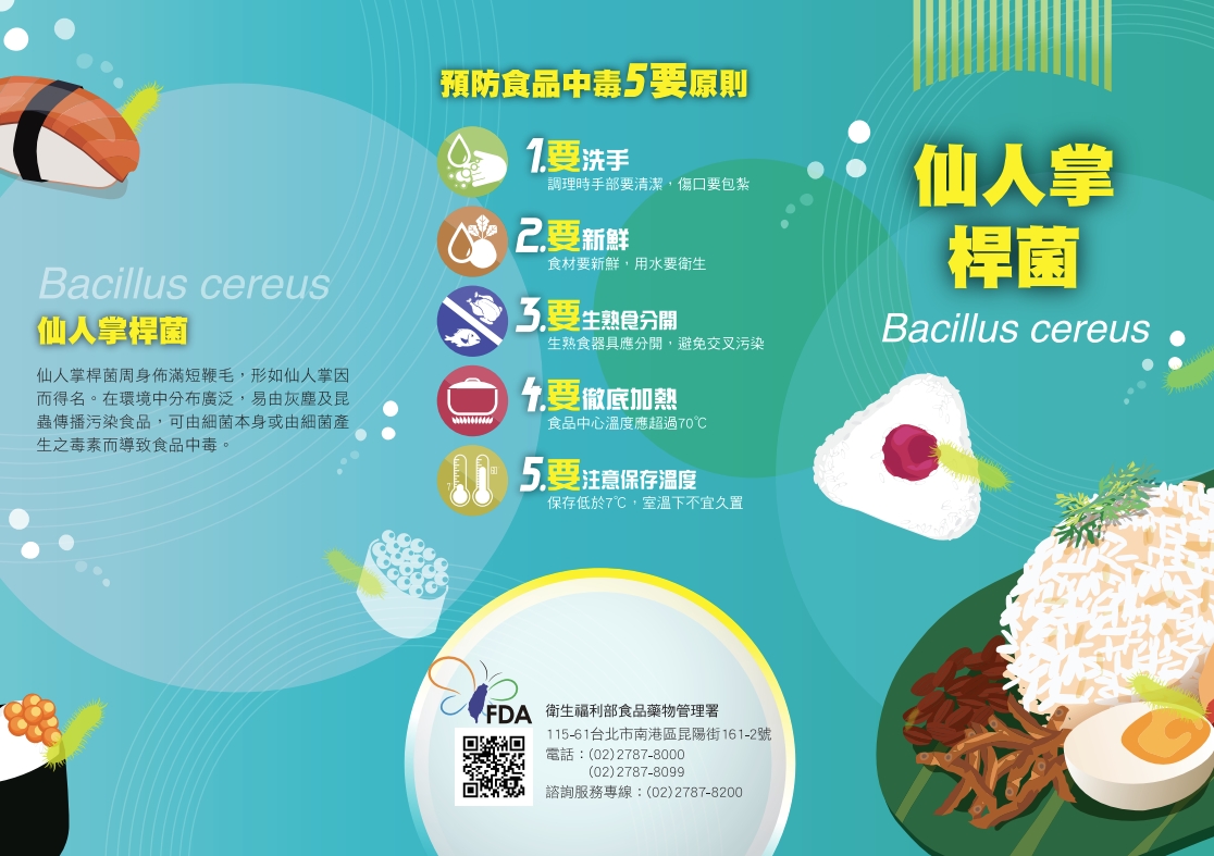 食藥署說明,仙人掌桿菌毒素(cereulide)為仙人掌桿菌(Bacillus cereus)可能產生之毒素,耐熱而不易經烹調破壞。倘經攝入,可能出現噁心、嘔吐及脹氣等症狀。