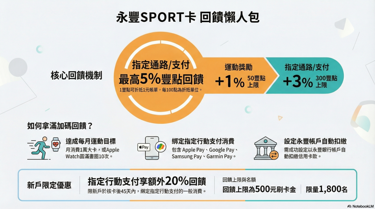 💡 永豐銀行SPORT卡:新戶一般消費綁定Samsung Pay享20%加碼回饋