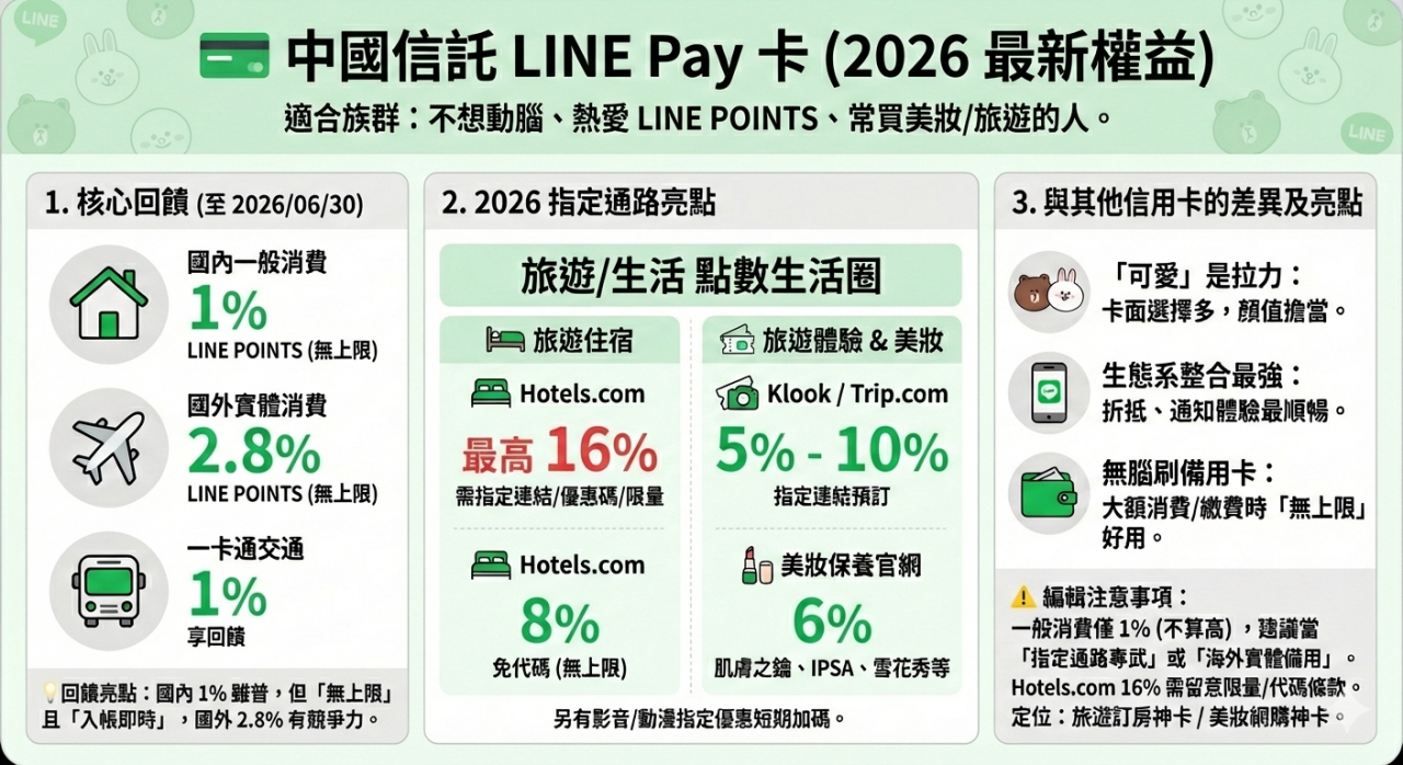 💡 中國信託LINE Pay卡:最高享LINE POINTS 16%回饋