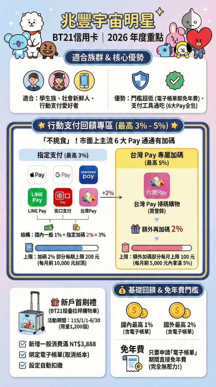 💡 兆豐銀行宇宙明星BT21信用卡