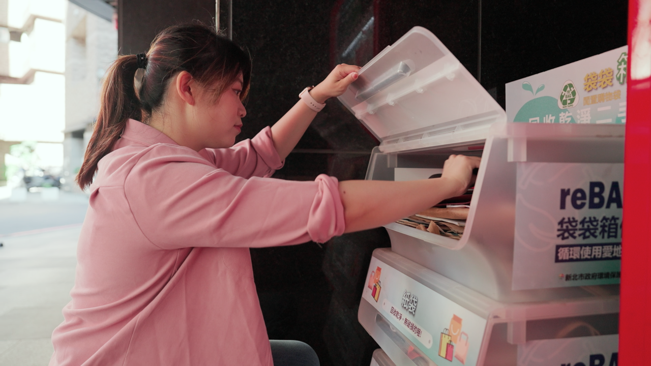 更貼心的是,新北市環保局也提供實際的支援。在各大賣場與市場周邊,設置「reBAG箱」,若市民忘記帶環保袋,可以直接免費取用;家中多餘或閒置的環保袋,也能送到回收箱,實現資源共享的善循環。