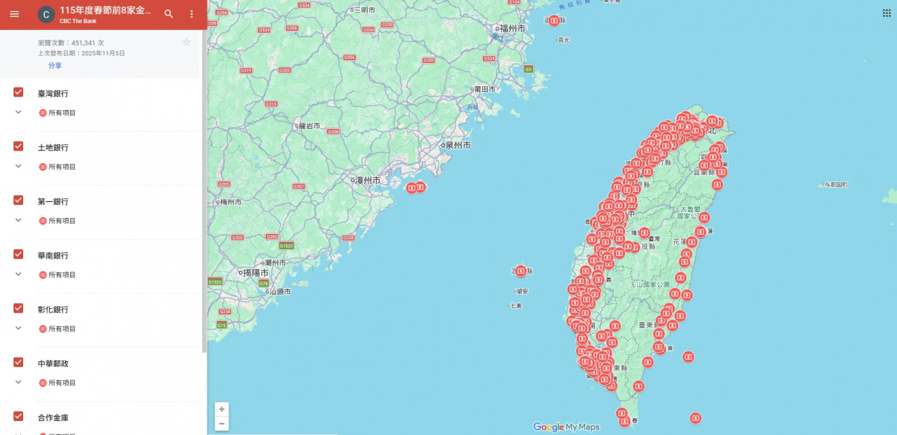 央行已於115年「新鈔兌換地點一覽表」中建立Google地圖連結,方便民眾查找指定兌鈔地點。