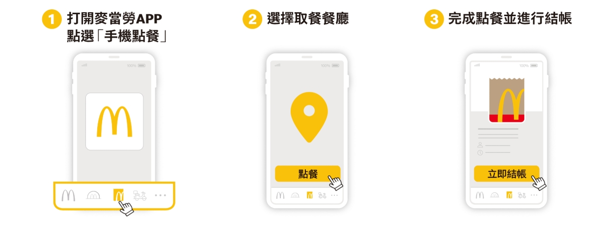 需注意的是,使用手機點餐「櫃檯」取餐服務請開啟麥當勞APP通知權限,並於通知後盡快取餐;使用麥當勞手機點餐「得來速」服務,請至得來速窗口報訂單編號完成點餐流程後,餐點方會開始製作;若超過兩小時未前來車道取餐,訂單將自動取消