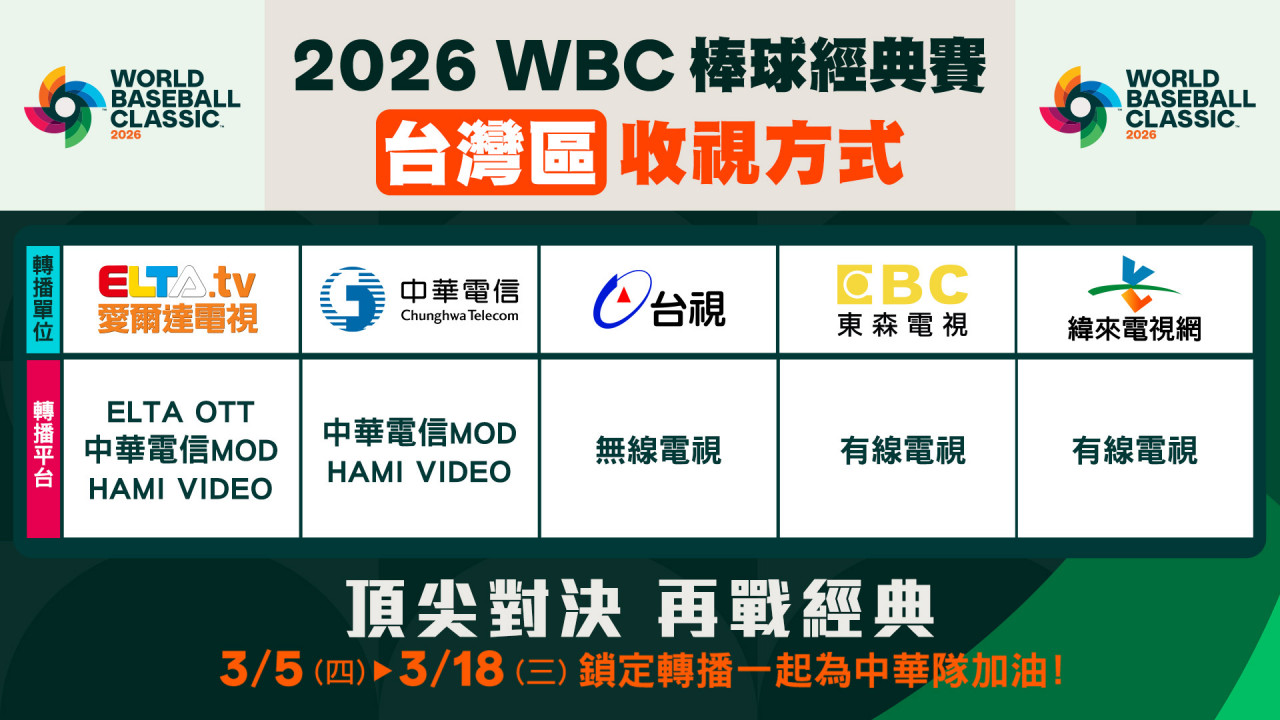 ▲2026WBC世界棒球經典賽轉播及直播平台。(圖/愛爾達體育家族)