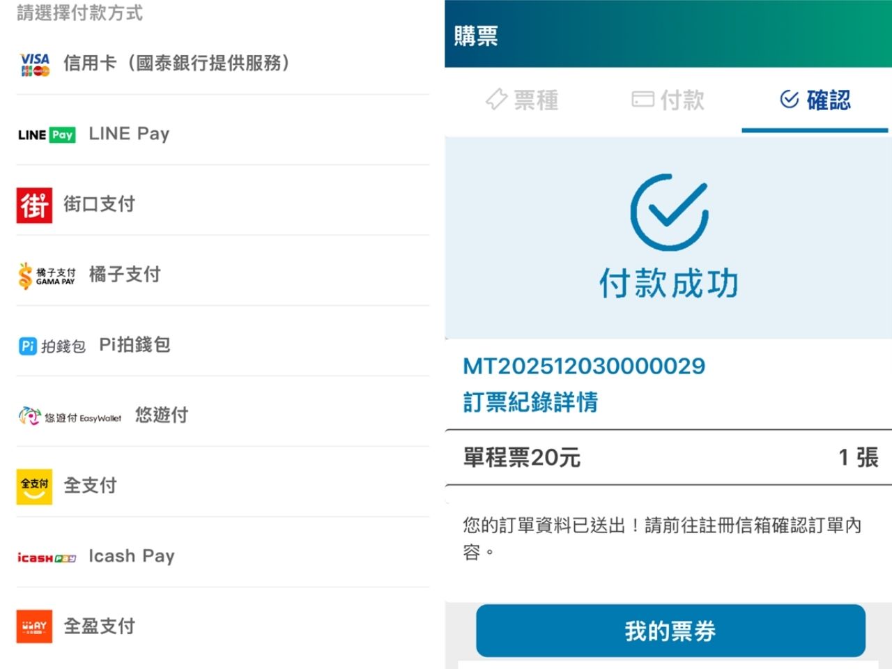 - 點選「購票」→確認票種點選「購票」→選擇起訖站→確認票價與張數→我要結帳→送出訂單