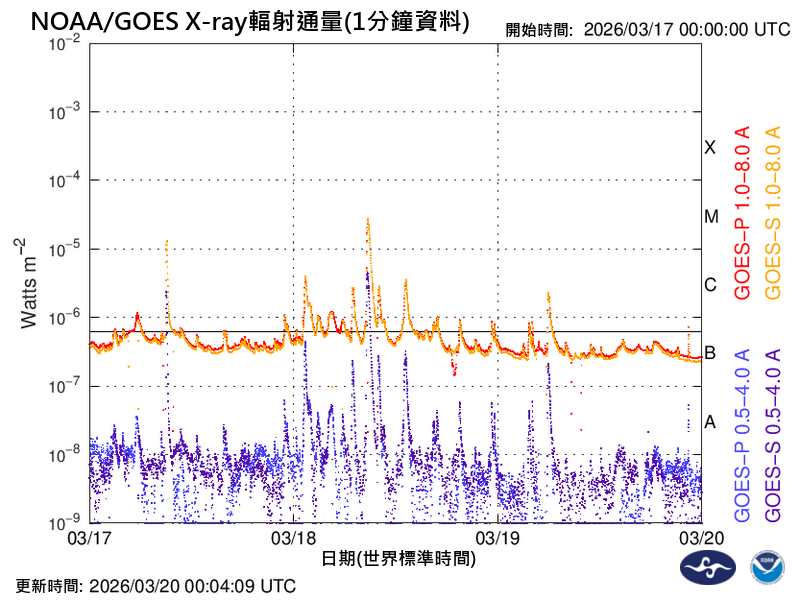 中央氣象署於周六(3/21)上午10時發布地磁擾動特報,因地球磁場擾動指數遽增,預期將短暫達到中度(G3)等級。