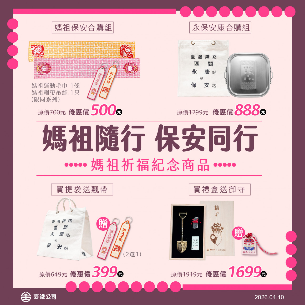 - 永保安康合購組、買禮盒送御守:臺鐵全通路販售。