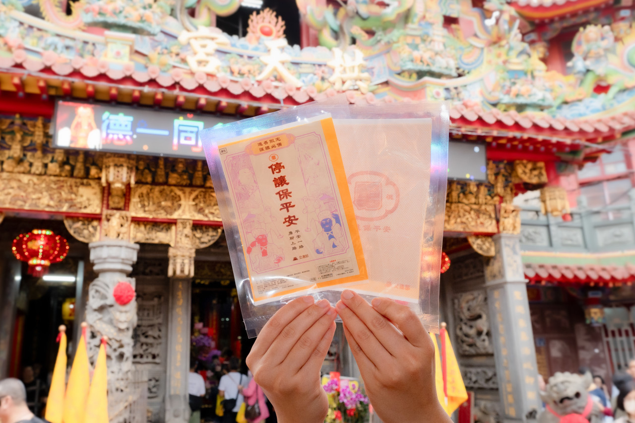 交通部還推出印有「停讓保平安」與「勇腳上路、平安一路」字樣的舒緩貼布,不僅為香燈腳提供支持,更將道安觀念融入,既實用又能夠紀念。