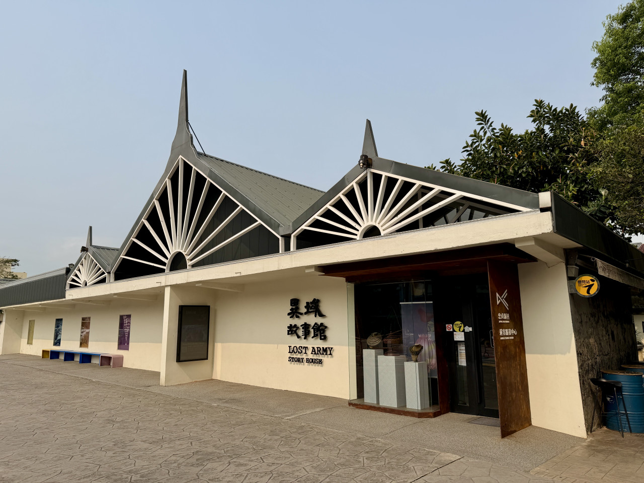 「異域故事館」館內保存了異域孤軍悲壯的歷史,將孤軍的故事區分為「亂、靜、迷、回、容」等五大主題,其中「亂」展覽區佈置成軍事空間,展出昔日孤軍在金三角地區使用的軍事裝備。